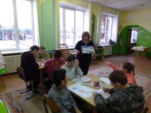 16 января сотрудники детско-юношеского отдела центральной библиотеки в рамках проекта по внестационарному библиотечному обслуживанию детей с ограниченными возможностями здоровья «Вместе весело читать» организовали для воспитанников Рогачёвского районного центра коррекционно-развивающего обучения и реабилитации арт-терапию «Разноцветная книга». Библиотекари предложили ребятам внимательно рассмотреть книги народных сказок, описать их героев. Затем под громкое чтение народной сказки «Рукавичка» дети раскрашивали иллюстрации к ней.