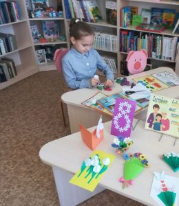 В преддверии замечательного весеннего праздника – Международного женского дня в детско-юношеском отделе центральной библиотеки с 5 по 7 марта проходила акция «Весенний букет». Мальчишки и девчонки в эти дни, посетив читальный зал, сделали своими руками замечательные подарки для своих родных и близких.