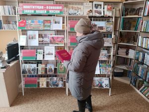 16 марта был проведен обзор «Конституция — основной закон нашей жизни». Библиотекарь рассказала о значении Конституции для государства в целом и для каждого гражданина нашей республики, сделала акцент, что соблюдать Конституцию, как основной закон страны – патриотический долг каждого из нас. Рассмотрели разделы и статьи из Конституции, познакомила с основными правами и обязанностями гражданина.