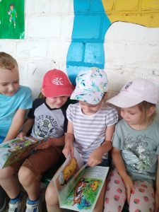 22 июля сотрудниками детско-юношеского отдела центральной библиотеки вновь была организована библиобеседка «Книжная радуга» в Дошкольном центре развития ребёнка. Библиотекарь читала увлекательные истории о животных «Лесная школа», «Капитан Барсук» и «Бронтозавр. Я и мои друзья» из серии «Моё первое чтение». Затем ребята с интересом просмотрели книги.